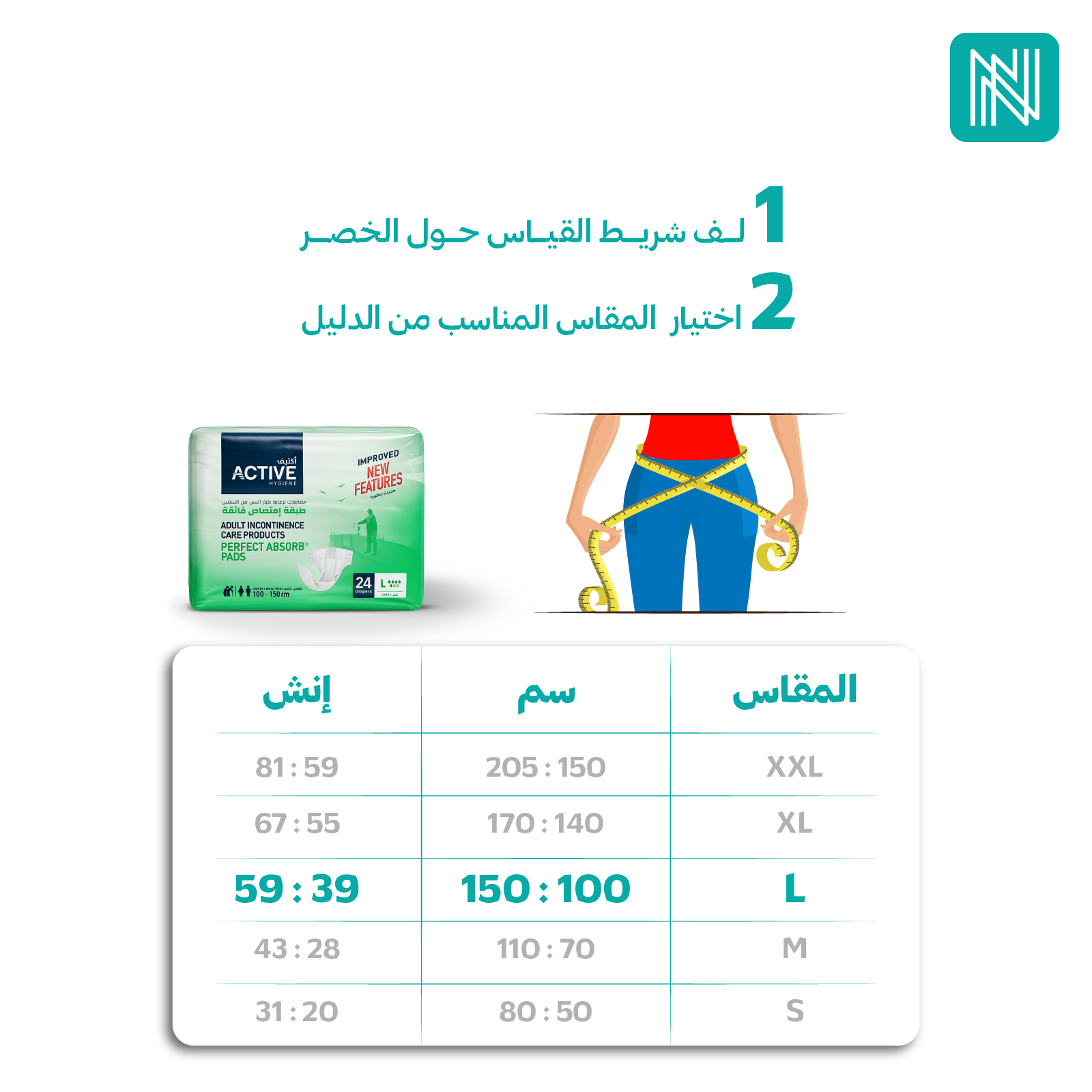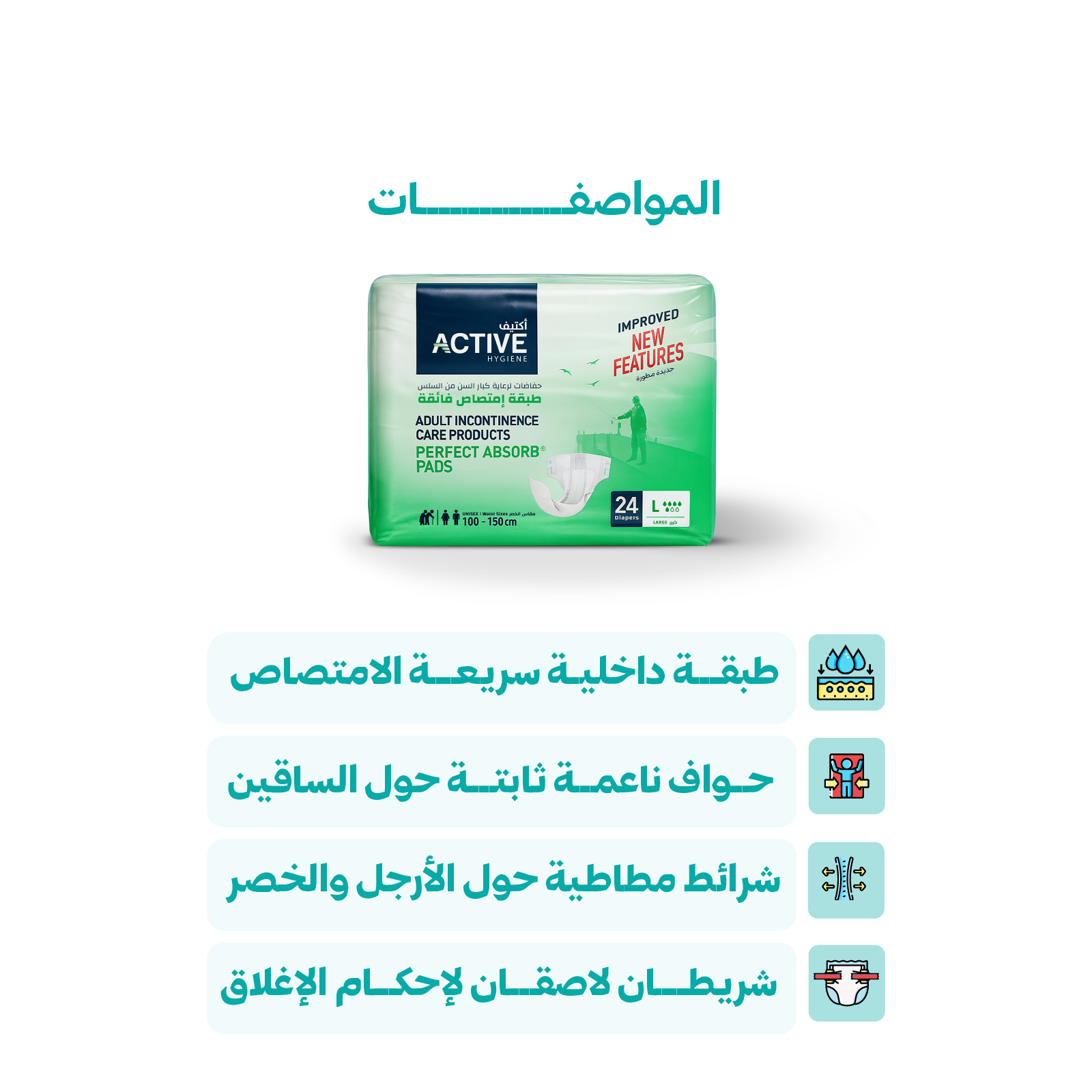 حفاض لاصق كبار السن لارج - أكتيف 0.000 KD