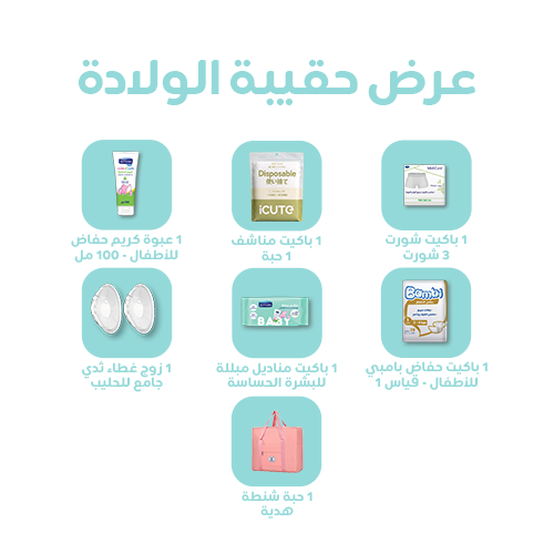 كل ما يلزمك في حقيبة واحدة، ودعي قلق التحضير للولادة مع حقيبة الولادة المميزة التي تضم جميع مستلزماتك.