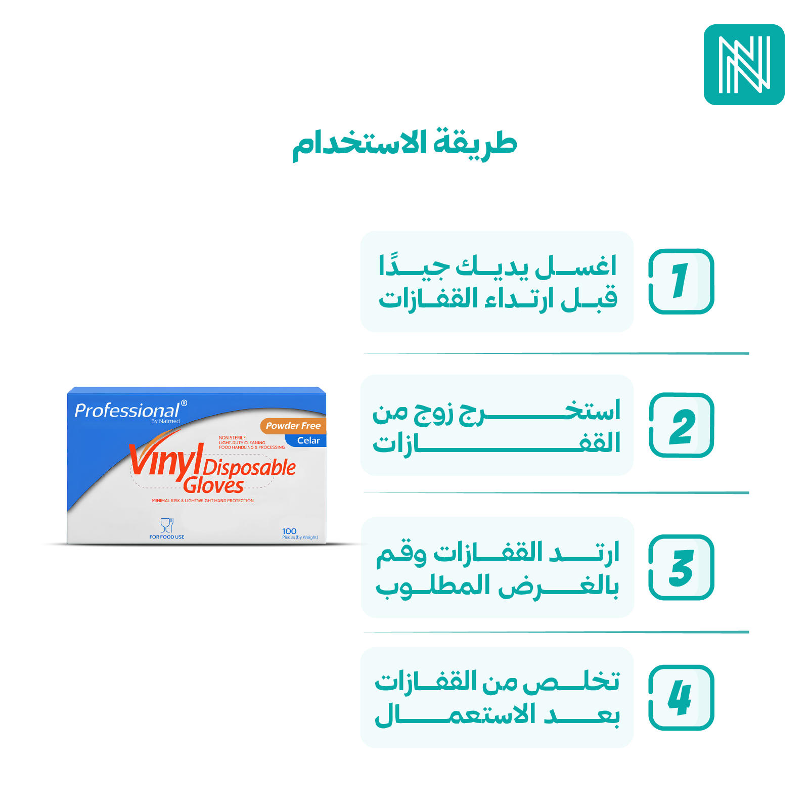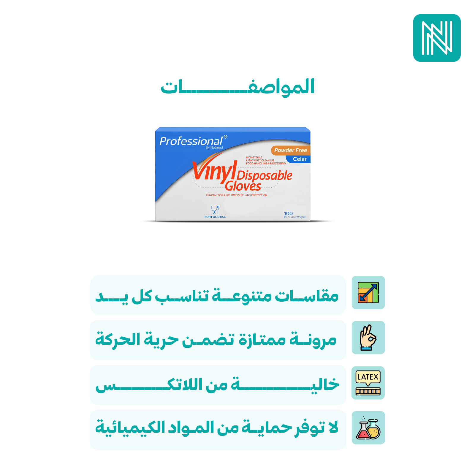 المادة: فينيل خالٍ من اللاتكس والبودرة.