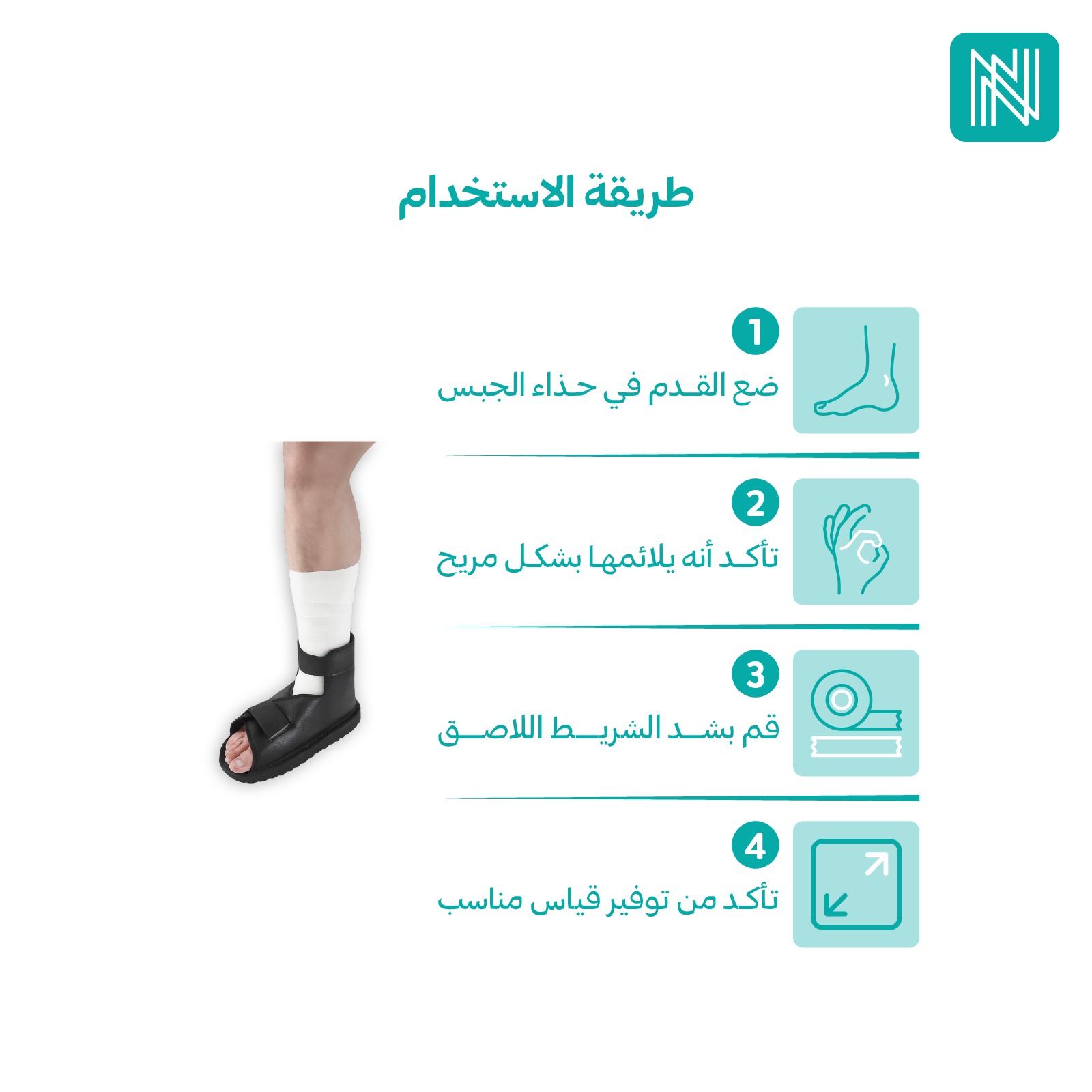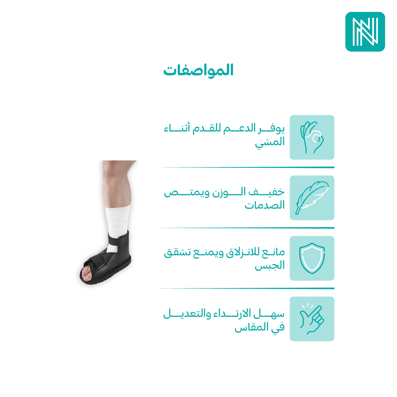 تمتع بسهولة في الحركة وودعم مثالي للقدمين أثناء المشي مع الجبس دون الحاجة لارتداء أحذيتك المعتادة أو الامتناع عن الخروج بسبب الجبس
