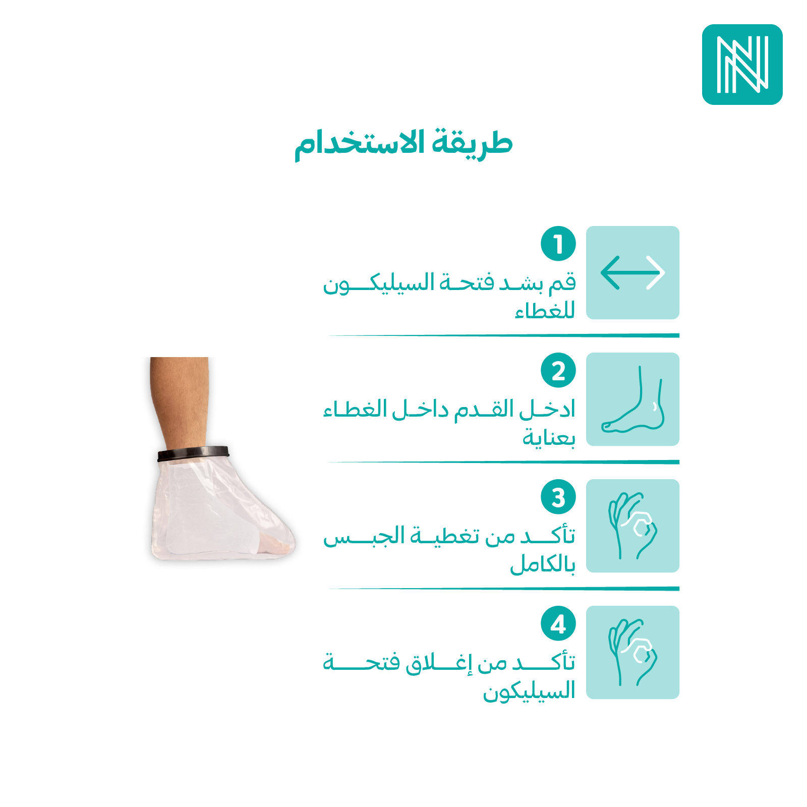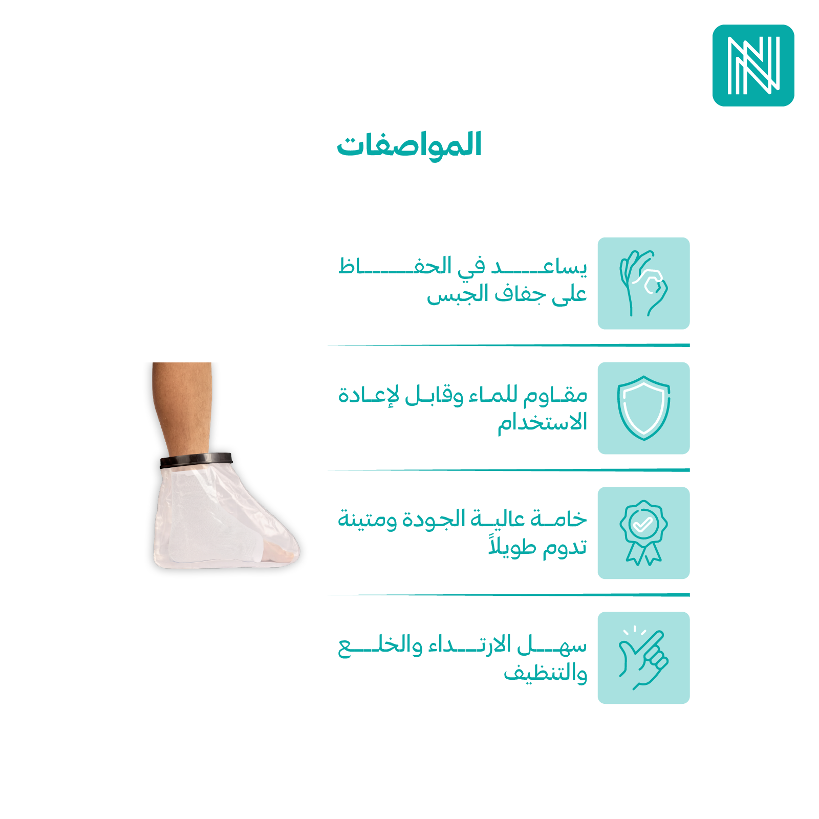 - لحماية الجبس أو الضماد على الساق من التعرض للماء أثناء الاستحمام أو المطر.